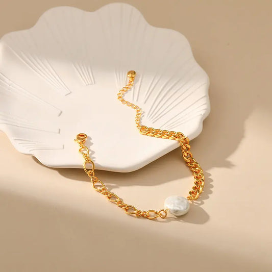 سوار من لؤلؤ الصدف غير المنتظم مطرز باللؤلؤ